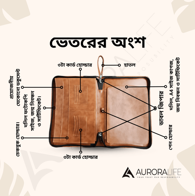 অরোরা প্রফেশনাল ডকুমেন্ট অর্গানাইজার দিয়ে আপনার বাসা বা অফিসের গুরুত্বপূর্ণ নথি, যেমন NID, সার্টিফিকেট, দলিল, এবং ফাইল, নিরাপদ ও গুছিয়ে রাখুন। এটি কাগজপত্র সুরক্ষার পাশাপাশি স্টাইলের নিশ্চয়তাও দেয়। প্রয়োজনীয় নথি হারানো বা ক্ষতির ঝামেলা এড়াতে এখনই ব্যবহার শুরু করুন।