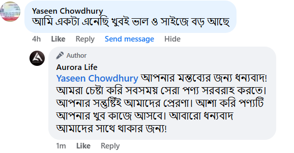 পোডাক্ট পছন্দ না হলে রিটার্নের সুযোগ।